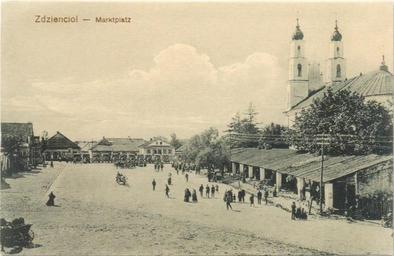 Keywords: Ździecieł, Rynak. Зьдзецел, Рынак (1916).jpg Зьдзецел Ździecieł пляц Рынак plac Rynak З калекцыі Ўладзіме а Ліхадзедава 1916 Author PD-old-70 History of Dziatlava Church of the Assumption in Dziatlava