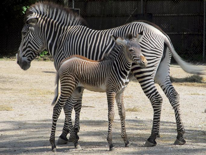 Keywords: zebra baby mother young newborn nature wildlife mammal striped design portrait horse outdoors pattern zoo enclosure