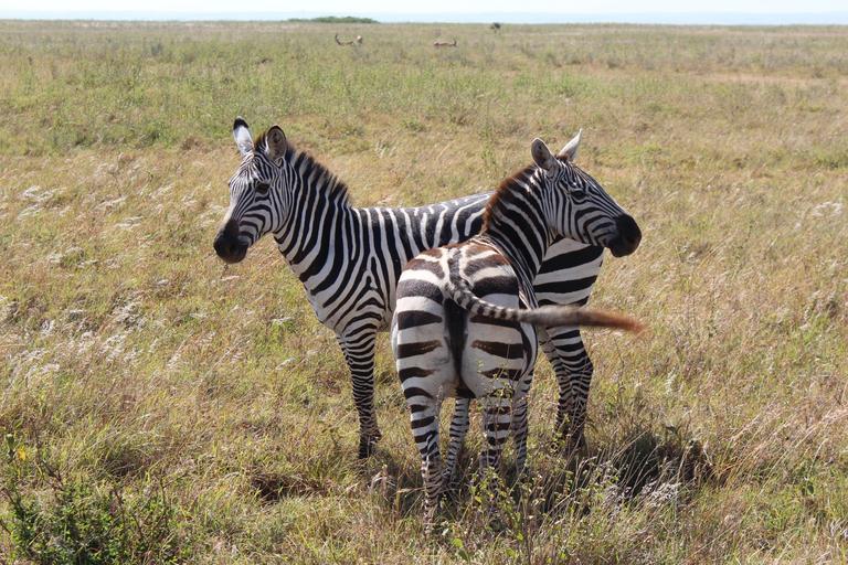 Keywords: zebra zebras two striped black white africa safari savannah animals tail black-white nairobi national park wildlife
