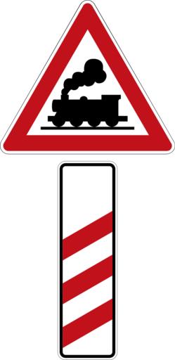 | Keywords: Zeichen 156 – dreistreifige Bake (rechts) vor unbeschranktem Bahnübergang, StVO 1970.svg Zeichen 156 “ dreistreifige Bake links vor beschranktem Bahnübergang Quelle Bundesgesetzblatt Jahrgang 1970 Nr 108 S 1584 Tag der Ausgabe Bonn 5 Dezember 1970 Korrekte Widergabe des digitalen RAL-Farbtons Verkehrsrot Farbcode C1121C Diese Zeichenkombination wurde mit Datum zum 1 April 2013 ersatzlos aus der StVO gestrichen und darf nicht mehr angeordnet werden Sign No 156 “ three-stripe beacon LHS announcing fenced railroad crossing 156 návesÅ¥ pred priecestÃm 240 m 156 240 meter till järnvägskorsning vänster sida av vägen own Mediatus 27 Juli 2013 erstes Hochladedatum bei Wikimedia Commons + Signs User Mediatus/no-new-version Cc-zero PD-VzKat SVG road signs in Germany 156 svg Diagrams of danger warning road signs of Germany 1971 set 156 svg Diagrams of danger warning road signs of Germany 1992 set 156 svg Level crossing countdown markers in Germany Zeichen 156 Zeichen 151 |