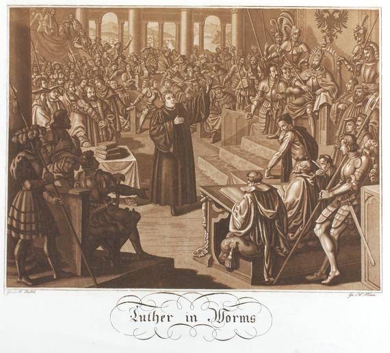 Keywords: Zentralbibliothek Solothurn - Luther in Worms - aa0470.tif Artwork Creator Martin Disteli In einer mittelalterlichen Halle verteidigt Luther seine Sache vor dem König und seiner Entourage sowie vielen weiteren anwesenden Männern between 1825 1833 Technique Aquatint paper brown Size mm 406 370 institution Zentralbibliothek Solothurn object history credit line accession number Call number aa0470 Zentralbibliothek Solothurn Public domain Information field ZBS form heading Illustration Information field ZBS form heading Historienbild Zentralbibliothek Solothurn PD-old-70-1923 Historical images of Solothurn people Works by Martin Disteli Paintings of Martin Luther Reichstag zu Worms |