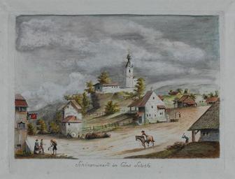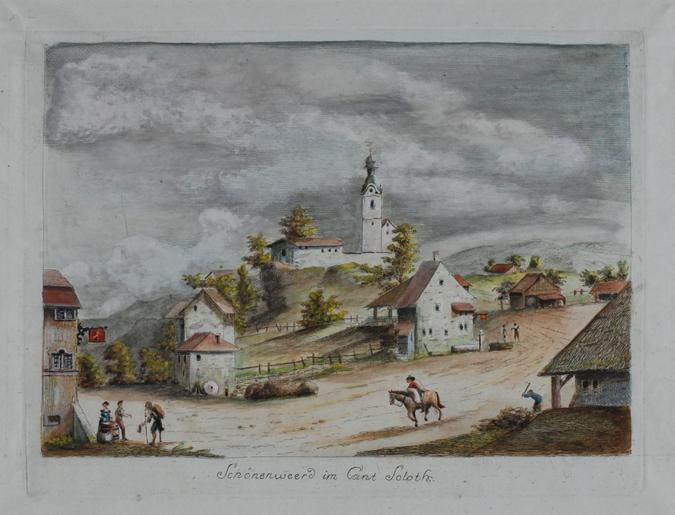 | Keywords: Zentralbibliothek Solothurn - Schönenweerd im Cant Soloth - aa0284.tif Blick von W auf Häuser und die Kirche von Schönenwerd im Vordergrund die breite Strasse mit Leuten between 1850 1870 Technique Etching paper colored Size mm 346 145 institution Zentralbibliothek Solothurn object history credit line accession number Call number aa0284 Zentralbibliothek Solothurn Public domain Zentralbibliothek Solothurn PD-old-70-1923 Historical images of the canton of Solothurn Stiftskirche Schönenwerd Daniel Düringer |