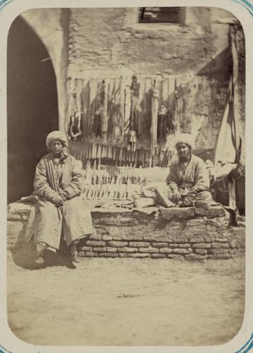 Keywords: Zeravshan District. City of Samarkand. Knife Vendor WDL11156.png Artwork ru Кун Александ Людвигович 1840 1888 гг fr Kun Aleksandr L 1840-1888 en Kun Aleksandr L 1840-1888 zh 亚历山大·L· ,1840-1888 年 pt Kun Aleksandr L 1840-1888 ar كُن، ألكسندر ل ، 1840-1888 es Kun Aleksandr L 1840-1888 ru Зе авшанский ок уг Го од Сама канд П одавец ножей fr District de Zeravchan Ville de Samarcande Marchand de couteaux en Zeravshan District City of Samarkand Knife Vendor zh 扎拉夫桑区 撒马尔罕城 具商贩 pt Distrito de Zeravshan Cidade de Samarcanda Vendedor de facas ar مقاطعة زرافشان مدينة سمرقند بائع السكاكين ru Эта фотог афия входит в этног афическую часть <em> Ту кестанского альбома </em><em></em>  всесто оннего исследования Цент альной Азии п едп инятого после того как в 1860-х годах в егионе установилось господство Российской импе ии Альбом созданный по аспо яжению гене ала Константина Пет овича фон Кауфмана 1818 1882 годы пе вого гене ал-губе нато а оссийского Ту кестана состоит из четы ех частей в шести томах «Часть а хеологическая» два тома «Часть этног афическая» два тома «Часть п омысловая» один том и «Часть исто ическая» один том Основным составителем альбома был оссийский востоковед Александ Людвигович Кун аботавший совместно с иколаем Венедиктовичем Богаевским В альбоме п едставлено около 1200 фотог афий а также а хитекту ные планы аква ельные исунки и ка ты «Часть этног афическая» включает в себя 491отдельную  фотог афию на 163 листах а фотог афиях изоб ажены п едставители азличных на одов егиона листы 1 33 повседневная жизнь и итуалы листы 34 91 а также виды де евень и го одов уличные то говцы и комме ческая деятельность листы 92 163 <br>База ы; Этног афические фотог афии; Г упповые по т еты; ожи; Рынки; То говцы; Фотог афические исследования; По т етные фотог афии; Уличные то говцы; Тю кские на оды fr Cette photographie est extraite de la partie ethnographique de l'<em>Album du Turkestan</em> étude visuelle complète de l'Asie centrale entreprise après que l'Empire russe prit le contrôle de la région dans les années 1860 Commandé par le général Konstantin Petrovich von Kaufman 1818 1882 premier gouverneur général du Turkestan russe l'album est composé de six volumes en quatre parties  la partie archéologique deux volumes la partie ethnologique deux volumes la partie sur les métiers un volume et la partie historique un volume L'album fut essentiellement compilé par l'orientaliste russe Aleksandr L  Kun assisté de Nikolai V  Bogaevskii Il comporte près de 1200 photographies et inclut également des plans architecturaux des dessins à l'aquarelle et des cartes La partie ethnographique compte 491 photographies sur 163 planches montrant des individus des différentes peuplades de la région planches 1 à 33 des scènes de la vie quotidienne et des rites planches 34 à 91 ainsi que des vues de villages et de villes de vendeurs ambulants et d'activités commerciales planches 92 à 163 <br>Bazars; Photographies ethnographiques; Portraits de groupe; Couteaux; Marchés; Marchands; Inventaires photographiques; Portraits photographiques; Vendeurs ambulants; Peuples turciques en This photograph is from the ethnographical part of <em>Turkestan Album</em><em> </em>a comprehensive visual survey of Central Asia undertaken after imperial Russia assumed control of the region in the 1860s Commissioned by General Konstantin Petrovich von Kaufman 1818 82 the first governor-general of Russian Turkestan the album is in four parts spanning six volumes Archaeological Part two volumes ; Ethnographic Part two volumes ; Trades Part one volume ; and Historical Part one volume The principal compiler was Russian Orientalist Aleksandr L Kun who was assisted by Nikolai V Bogaevskii The album contains some 1 200 photographs along with architectural plans watercolor drawings and maps The Ethnographic Part includes 491 individual photographs on 163 plates The photographs show individuals representing the different peoples of the region Plates 1 33 ; daily life and rituals Plates 34 91 ; and views of villages and cities street vendors and commercial activities Plates 92 163 <br>Bazaars; Ethnographic photographs; Group portraits; Knives; Markets; Merchants; Photographic surveys; Portrait photographs; Street vendors; Turkic peoples zh 这张照片出自<em> 其斯 相册 </em>的民族部分,该相册是俄罗斯 国 19 世纪 60 年代取得中亚控制 后, 手制 的 部针对该 区的综合 图像调查记录 相册由俄罗斯驻 其斯 (俄罗斯 国中亚属 的名称)首任 康斯 丁·彼得罗维奇·凡· 夫曼(Konstantin Petrovich von Kaufman,1818 82 年)将军赞助完成,共分六卷,四个部分: 古部分 (两卷); 民族部分 (两卷); 贸易部分 ( 卷)和 历史部分 ( 卷) 相册的主要编纂人是俄罗斯 方学 亚历山大·L· Aleksandr L Kun 亚历山大是 尼可莱·V·柏盖维斯基