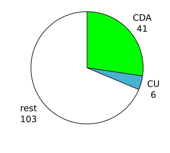 | Keywords: ZetelsBalkenendeIV zonder PvdA.svg en Pie chart of the number of seats in the Dutch Lower House of the parties in the caretaker Balkenende IV Cabinet after 23 February 2010 ie without PvdA Dutch version nl Taartdiagram van het aantal zetels in de Nederlandse Tweede Kamer van de coalitiepartijen in het demissionaire kabinet-Balkenende IV na 23 februari 2010 oftewel zonder de PvdA own Mtcv 2010-02-23 Pie charts SVG pie charts Cabinets of the Netherlands 2010 Cabinet Balkenende IV File ZetelsBalkenendeIV2 |