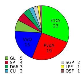 Keywords: ZetelsEK2003.svg Pie chart of distribution of seats in the Dutch Senate Eerste Kamer after the 2003 Dutch senate election own 2007-03-08 Mtcv PD own work Elections in 2003 Election apportionment diagrams of the Netherlands Eerste Kamer