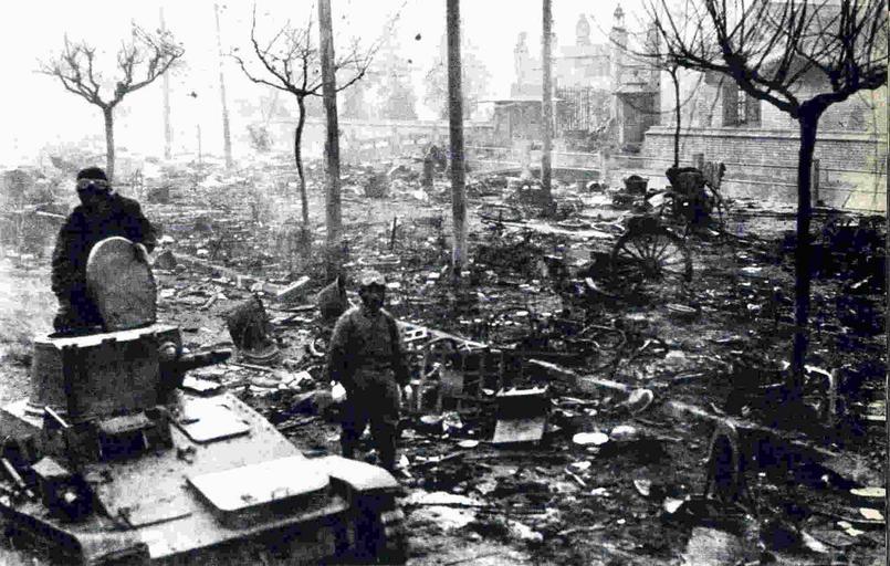 MAKE A MEME View Large Image Zhongshan Road.jpg en A Japanese soldier walking through debris scattered on Nanking's Zhongshan Road shortly after the fall of Nanking in December 1937 2014-08-13 15 05 39 Mainichi Shimbun December 19 1937 Mainichi Shimbun PD-1996 Custom ...