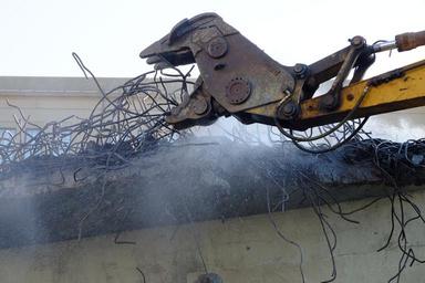 Keywords: Zhongxiao Bridge Connection Ramp Scrapping 20160209-042.JPG zh-tw 臺北市忠 橋北 引道拆除工程第三日,移動橋 殘留鋼筋的 手與減少塵埃飛揚噴灑的水柱 2016-02-09 16 13 54 Own 玄史生 other versions cc-zero Demolition of Zhongxiao Bridge Connection Ramp 玄史生写 文庫 Taken with Fujifilm X-T1