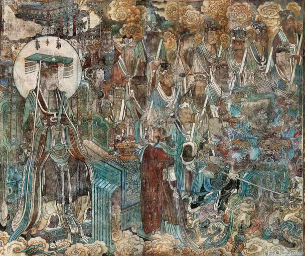 View Original: | Zhu_Haogu's_atelier._The_Immortal_Procession_for_an_Audience_with_the_Three_Primodials._ca._1325,_Mural,_Sanqingdian,_Yonlegong,_Shanxi_Province..jpg (1009x850) | |||