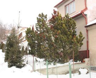 Keywords: Zima 2010 01 22 1082.JPG en group of trees spruce and Mountain Pine cs skupina jehličnanů mladé smrky stará borovice kleč zima 2010 Brno Komín Chaloupky own I Sáček senior 2010-01-22 Pinus mugo cultivars Plants in Brno-Komín