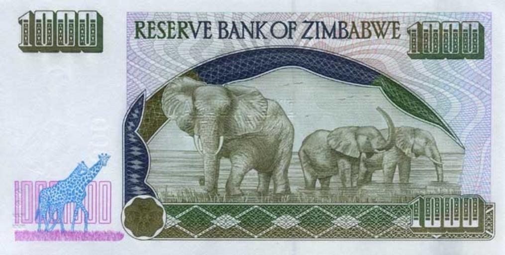 Keywords: Zimbabwe $1000 12b 2003 Reverse.jpg This is the obverse of a paper banknote of the Zimbabwe Dollar Transferred from http //en wikipedia org en wikipedia 2008-10-29 Original uploader was Mangwanani at http //en wikipedia org en wikipedia PD-ZW-CURRENCY PD-ZW-currency original upload log page en wikipedia Zimbabwe_ 241000_12b_2003_Reverse jpg 2008-10-29 13 51 Mangwanani 550×284× 29476 bytes <nowiki> Summary This is an image of the front of the paper Zimbabwe dollar which circulated from 2001 and 2004 Use of this image in article Banknotes of the Reserve Bank of Zimbabwe is believed to be fair use because It adds </nowiki> Banknotes of Zimbabwe 1994-2003 Elephants on banknotes Banknotes with a face value of 1000 Giraffes on banknotes Blue banknotes of Zimbabwe |