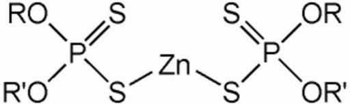 Keywords: Zinc dialkyl dithio phosphate.png Chemical structure of Zinc dialkyl dithio phosphate Author date of creation selfmade by Shaddack 1 November 2005 Source self-made Copyright Public Domain PD Comments b/w hires PNG; ChemDraw 2005-11-14 own assumed Shaddack zinc compounds |