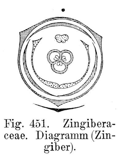 | Keywords: Zingiber Blütendiagramm.png Flower diagram of Zingiber Strasburger Noll Schenck Schimper Lehrbuch der Botanik für Hochschulen 4 Auflage Gustav Fischer Jena 1900 scanned 8 June 2006 de Benutzer Griensteidl PD-Art Zingiber Strasburgers flower diagrams Zingiberaceae botanical illustrations |