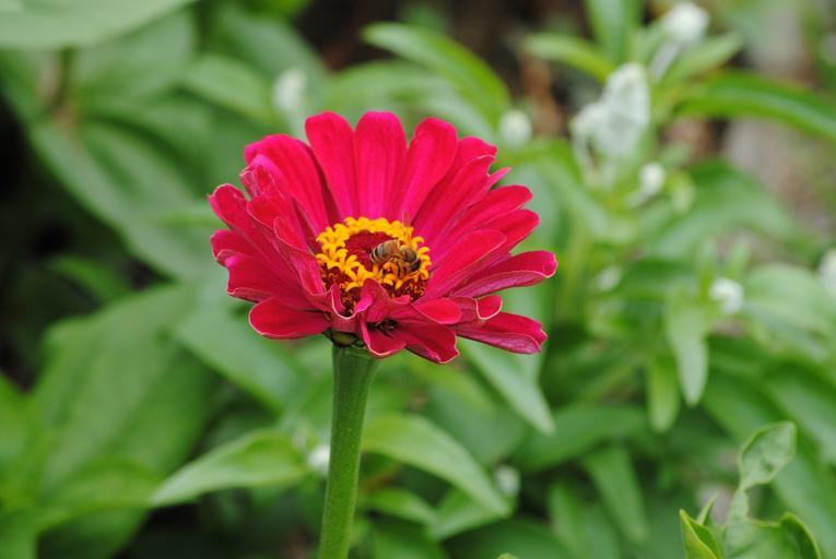 Keywords: zinnia pink flower bee pollen honey macro close up nature plant spring blossom sweet beautiful bloom color colorful red