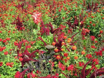 Keywords: zinnia salvia foxtail flowers blütenmeer bed discounts decoration decorative garden garden exhibition colorful color bright noble red yellow orange german federal horticultural show