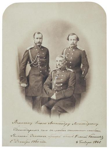 Keywords: Zinowiew N W Gogel G F Kaznakow N G.jpg ru По т ет иколая Васильевича Зиновьева Г иго ия Федо овича Гогеля иколая Геннадьевича Казнакова Alexander Dmitrievich Zinoviev 1854-1931 russischer Politiker; General GOGEL; Nikolaj KAZNAKOW 1824-1885 General der Infanterie In 1875-1881 war er General-Gouverneur von Westsibirien und Befehlshaber der Sibirischen Kosaken-Armee http //www hermitagemuseum org/fcgi-bin/db2www/fullSize mac/fullSize selLang Russian dlViewId E 2B23PL4KW9IWNN3SSH size big selCateg picture dlCategId P4H 4UD2ZDQQ6S6 2B40 comeFrom quick 1861 Author PD-old PD-RusEmpire House of Zinoviev Gogel family Kaznakov family |