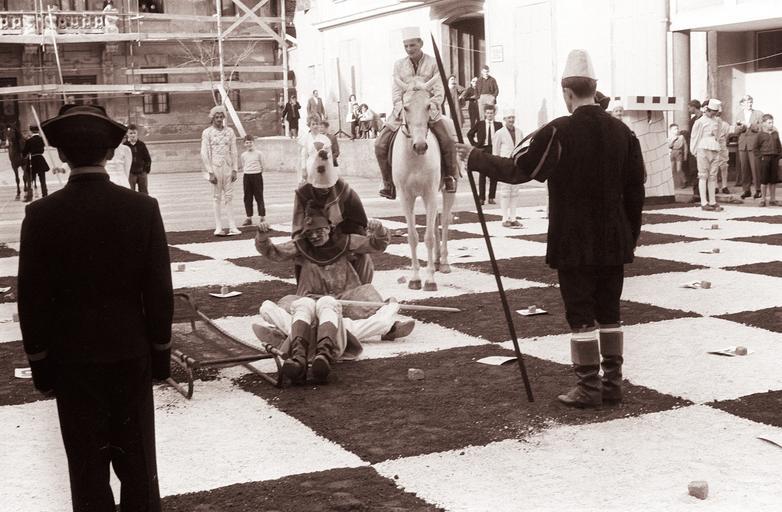 | Keywords: Živi šah na Rotovškem trgu v Mariboru 1962 (3).jpg Živi šah na Rotovškem trgu v Mariboru 509399 1962-04-22 creator Jože Gal PD-Slovenia 1962 in Slovenia Historical black and white photographs of Maribor Town Hall Square Maribor Events in Maribor Chess in Slovenia Human chess Giant street chess Horses of Maribor Photographs by Jože Gal |