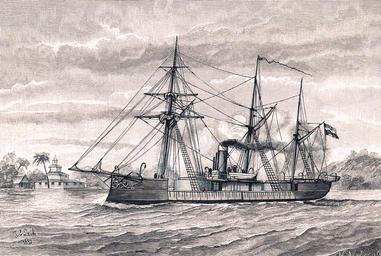 Keywords: ZM ramtorenschip Prins Hendrik der Nederlanden.jpg en Ramtorenschip Hendrik der Nederlanden Eigen Haard nvt 1880 Dutch East Indies Prins Hendrik der Nederlanden ship 1867 PD-old-100
