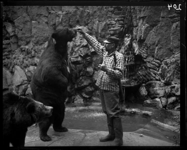 | Keywords: lincoln park zoo chicago illinois zookeeper bear historic lincoln park zoo lincolnparkzoo waterfall lincoln park lincolnpark man work feeding wellies wellington boots wellingtonboots rubber boots rubberboots bears enclosure feeding bears feedingbears checked jacket checkedjacket smoking pipe cap hat moustache commons:event=commonground2009 animalia chordata mammalia carnivora caniformia ursidae mammal animal animals blackandwhite monochrome black and white A zookeeper, in checked jacket, smoking a pipe and feeding bears Lincoln Park Zoo. 1900. Original size and material: 4x5 inch glass negative Digital Identifier: Z80034 Part of the Illinois Urban Landscapes Project: www.fieldmuseum.org/urbanlandscapes/ A zookeeper, in checked jacket, smoking a pipe and feeding bears Lincoln Park Zoo. 1900. Original size and material: 4x5 inch glass negative Digital Identifier: Z80034 Part of the Illinois Urban Landscapes Project: www.fieldmuseum.org/urbanlandscapes/ |
