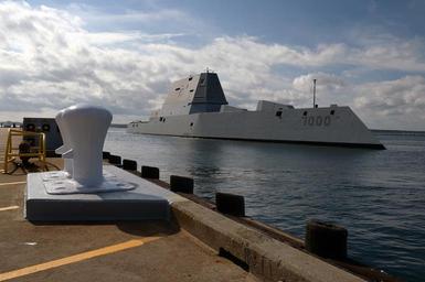 Keywords: Zumwalt (DDG 1000) arrives at Naval Station Newport, Rhode Island. (29482397641).jpg NEWPORT R I Sept 8 2016 The guided-missile destroyer Pre-Commissioning Unit PCU Zumwalt DDG 1000 arrives at Naval Station Newport Rhode Island during its maiden voyage from Bath Iron Works Shipyard in Bath Maine The port visit marks Zumwalt ™s first stop before the ship ultimately sails to her new homeport of San Diego During the transit the ship is scheduled to take part in training operations a commissioning ceremony in Baltimore and various additional port visits Zumwalt is named for former Chief of Operations Elmo R Zumwalt and is the first in a three-ship class of the Navy ™s newest most technologically advanced multi-mission guided-missile destroyers U S Navy photo by Chief Mass Communication Specialist James E Foehl/Released 160908-N-PX557-086 Join the conversation http //www navy mil/viewGallery asp www navy mil/viewGallery asp http //www facebook com/USNavy www facebook com/USNavy http //www twitter com/USNavy www twitter com/USNavy http //navylive dodlive mil navylive dodlive mil http //pinterest com pinterest com https //plus google com plus google com https //www flickr com/photos/usnavy/29482397641/ Zumwalt DDG 1000 arrives at Naval Station Newport Rhode Island 2016-09-08 15 28 https //www flickr com/people/56594044 N06 Official U S Navy Page from United States of America MCC AW/SW/EXW James E Foehl/U S Naval War College Public Affairs Attribution License IPTC Caption-Abstract U S Navy photo PD-USGov-Military-Navy Official U S Navy Imagery https //flickr com/photos/56594044 N06/29482397641 2016-09-14 15 30 56 cc-by-2 0 160908-N-PX557-086 Navy Files from the U S Navy Flickr stream Naval Station Newport Photographs taken on 2016-09-08 September 2016 in Rhode Island USS Zumwalt DDG-1000 Taken with Nikon D4 |
