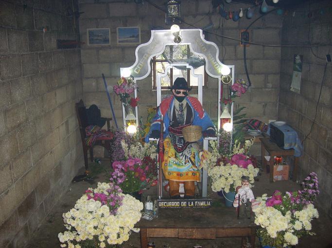 | Keywords: Zunil SanSimon.JPG A lifesize doll of San Simón Maximón a Mayan god turned Christian saint a subject of veneration in Zunil Guatemala The shrine moves from one private house to another every year on November 1 People come to pray there and leave various offerings - usually alcohol and tobacco The local family takes care of the doll and the shrine during the year while charging a nominal fee e g 5 GTQ to visitors own 2007-11-17 Sapfan Jan Pesula The doll and shrine is believed to be in a public domain as a work of traditional folk art The photograph is released to public domain by author but please quote author when reusing en Maximón Zunil Maya deities Maximon |