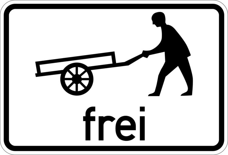 | Keywords: Zusatzzeichen 723o - Fußgänger mit Handfahrzeugen oder sperrigen Gegenständen frei.svg de Zusatzzeichen 723o Fußgänger mit Handfahrzeugen oder sperrigen Gegenständen frei; nach der StVO von 1970 eingeführt 1971 own gezeichnet von Mediatus Mediatus 15 August 2013 Herstellungsdatum + Signs User Mediatus/no-new-version Cc-zero PD-VzKat SVG road signs in Germany 723o svg German language signs Diagrams of additional signs of Germany 1971 set 723o svg | ||||