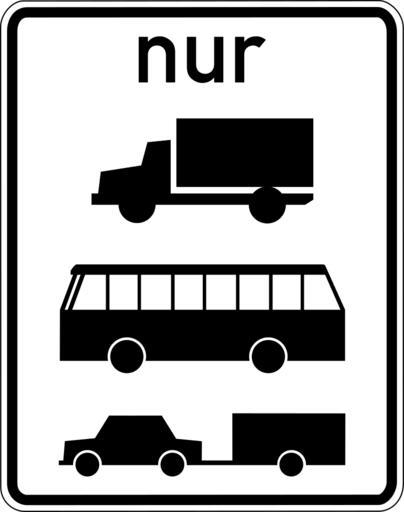 | View Original: | Zusatzzeichen (ohne Nummer) - nur LKW, Kraftomnibus und Pkw mit Anhänger.svg (587x745) | |||